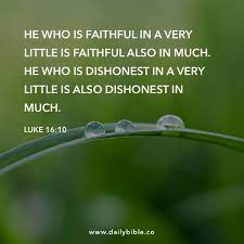 He who is faithful in a very little thing is faithful also in much. We never arrive Being obedient and faithful is a daily process. But if you are dishonest in little things you wont be honest with greater responsibilities.